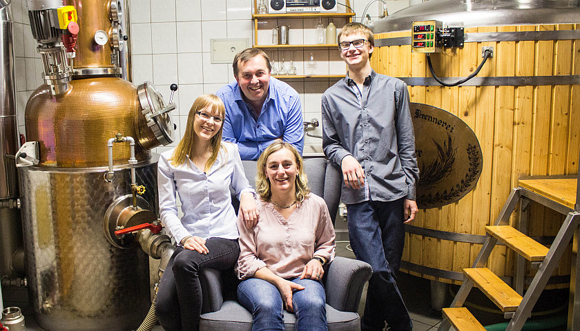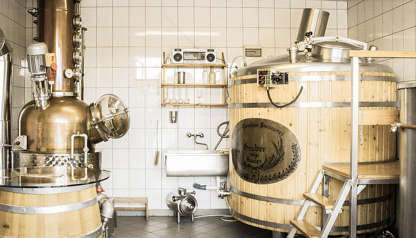 Familie Gruber produziert in Niederwaldkirchen aus eigenem Obst und Getreide edle Brände, Whisky, Gin, Liköre, Sirupe und vieles mehr.
