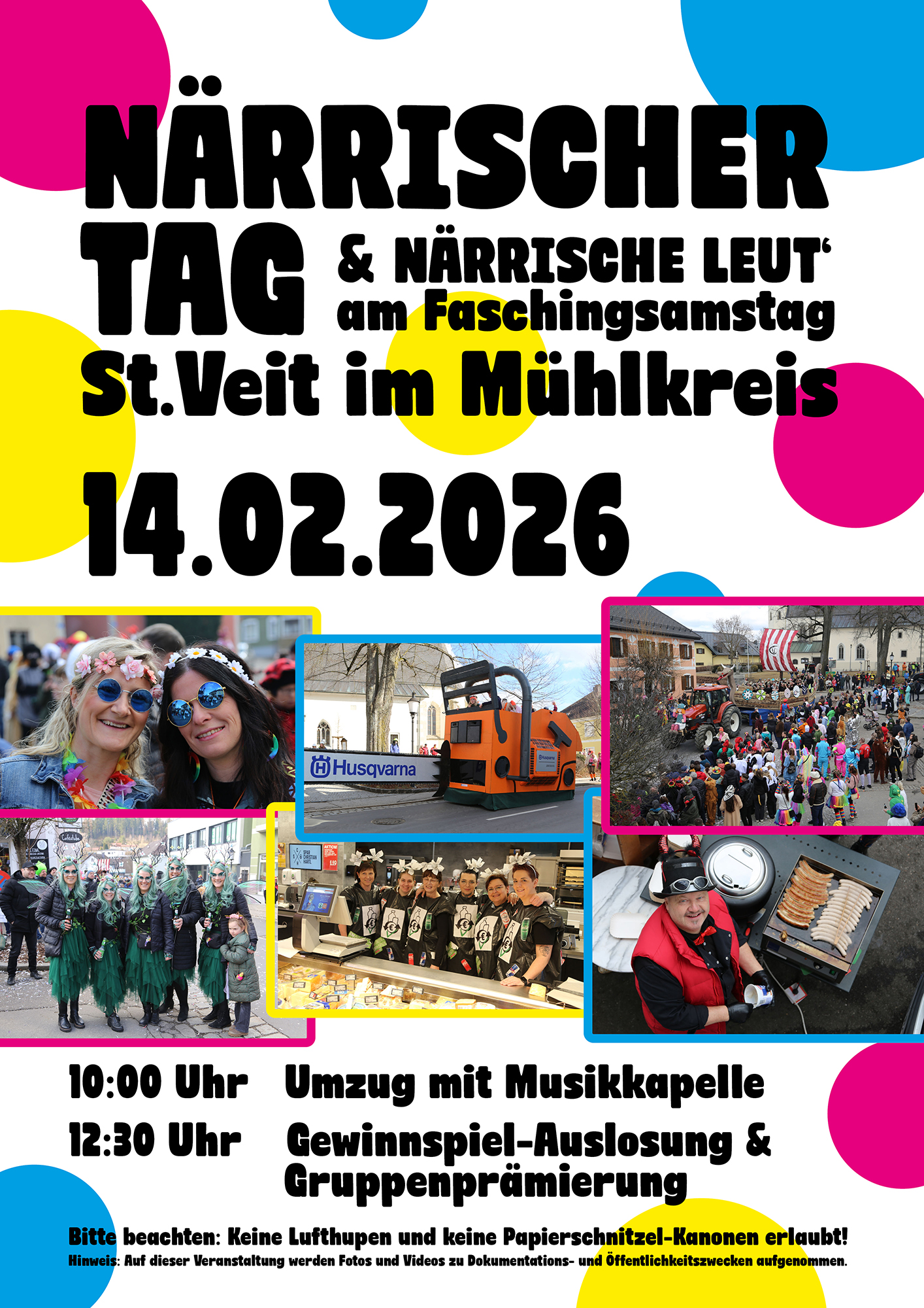 St. Veit im Mühlkreis verwandelt sich auch 2026 wieder in eine bunte Bühne guter Laune und närrischer Begegnungen. Der traditionelle Närrische Tag & Närrische Leut’ lädt alle Faschingsbegeisterten ein, gemeinsam zu feiern, zu lachen und den Winter für einen Tag zu vergessen.